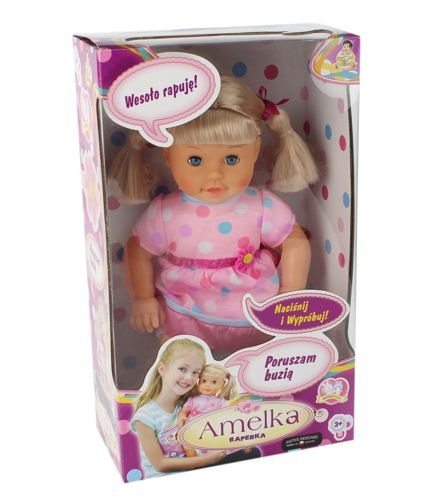 Fantastyczna lalka to zabawa na wiele godzin. Amelka ma gumowe ręce, buzię i nóżki. Ubrana w różową sukienkę, jej piękne długie włosy będą idealne do czesania i tworzenia nowych fryzu, a kokardki dodadzą jej uroku. Śliczna buzia lali sprawi, że dziecko chętnie będzie bawić się swoją ulubioną zabawką.